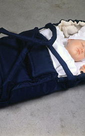 - Material(er) Babybag, sengeteppe, voksfigur, babytøy