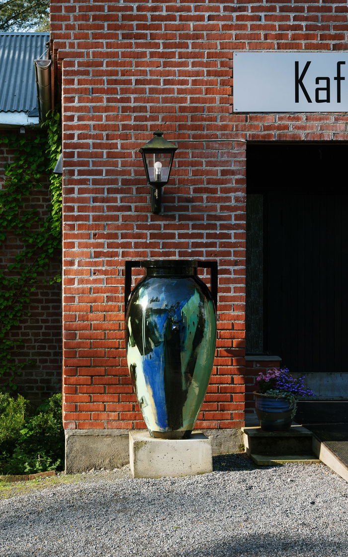 Krukkeformen oppfattes tradisjonelt som brukskunst, som objekter som er ment å benyttes i en spesiell sammenheng. For å frakte noe - vann eller vin for eksempel - eller for å fungere som urne i forbindelse med begravelsesritualer. I denne sammenheng er krukkene utelukkende dekorative objekter, og plassert på hver sin side av inngangen til museets kafè kan de gi assosiasjoner til en monumental portal.